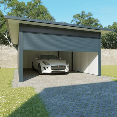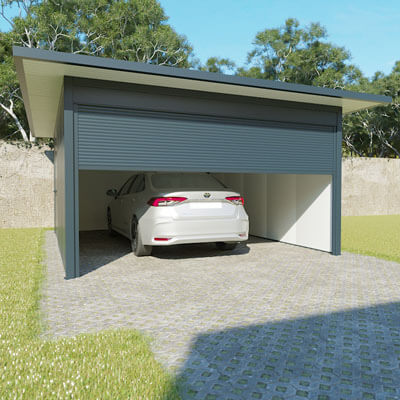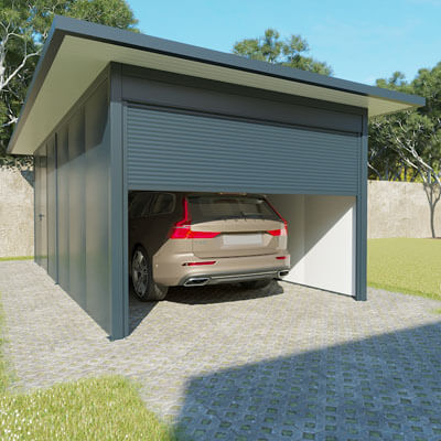 Garage toit plat, différentes dimensions, gris ou blanc.