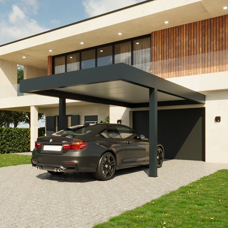 Carport aluminium toit plat adossé arrière excelsium toutes couleurs, sur mesure, prêt à être montée, livré en kit.