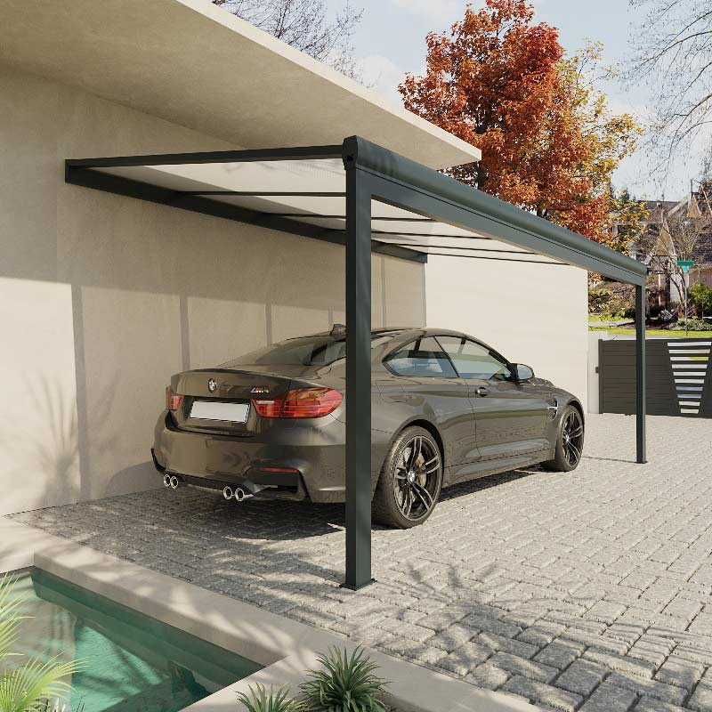 Carport aluminium adossé classique toiture en polycarbonate 16 mm renforcé toutes couleurs, sur mesure, prêt à être montée, livré en kit.