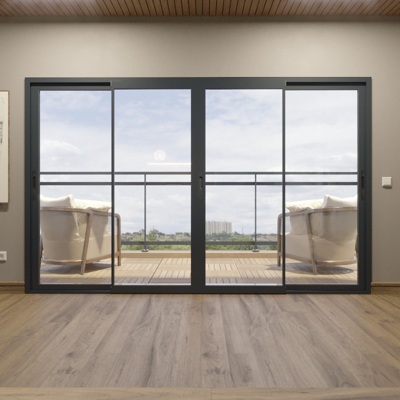 Porte-Fenêtre Coulissante Aluminium 4 Vantaux à Rupture de Pont Thermique Sur Mesure