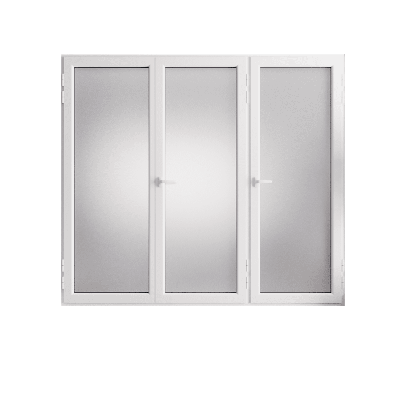Porte-fenêtre PVC 3 vantaux sur mesure, couleur extérieure au choix: gris ou blanc.