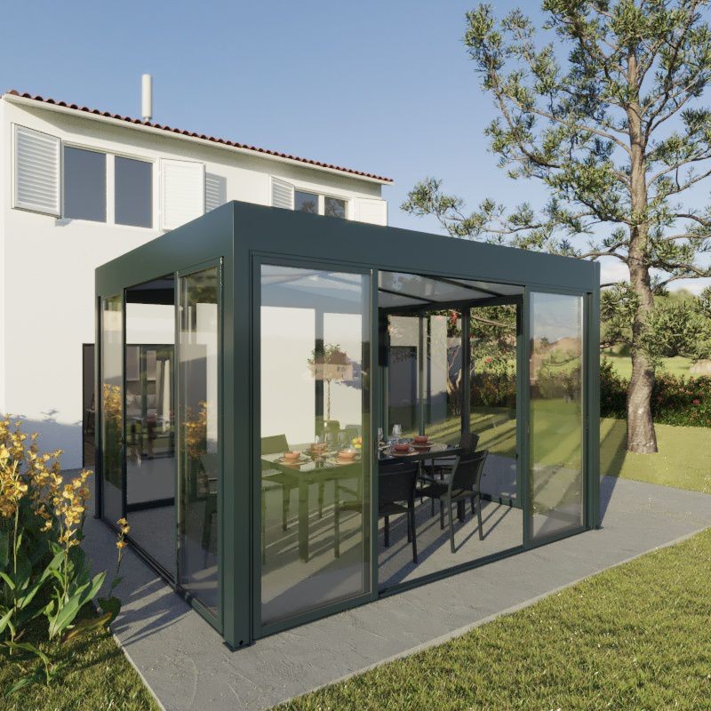 Jardin d'hiver autoporté en aluminium, 4000 x 3600 mm, blanc ou gris.