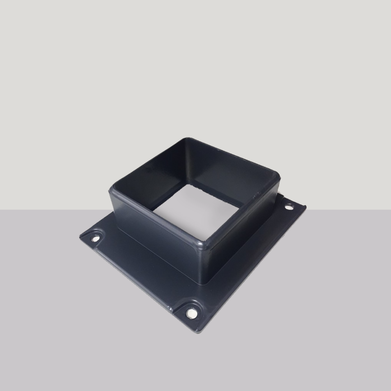 Platine au sol en aluminium pour montant de 100x100 mm, couleurs blanc RAL 9016 ou gris RAL 7016.