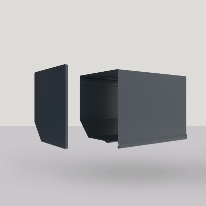 Joue aluminium Zamac pour caisson pan coupé, gauche ou droite, avec patte renforcée.