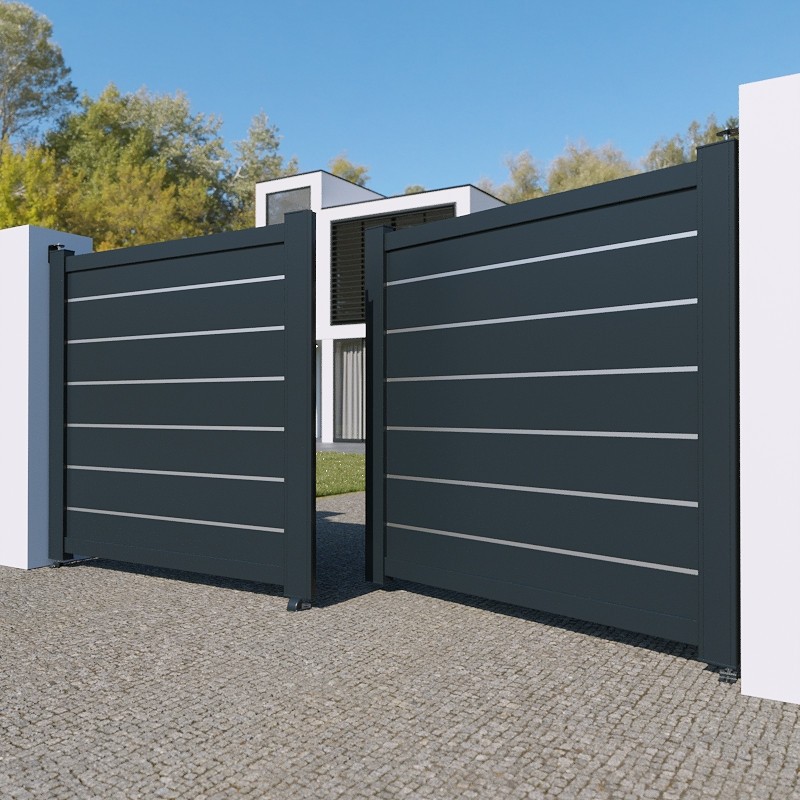 Portail aluminium Dallas battant sur mesure à motoriser. Largeur entre piliers max : 4500 mm. Hauteur max : 2100 mm.