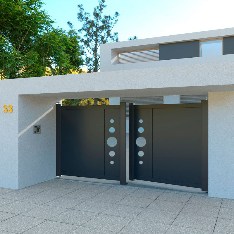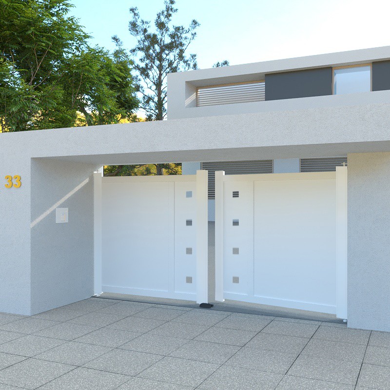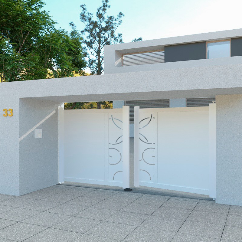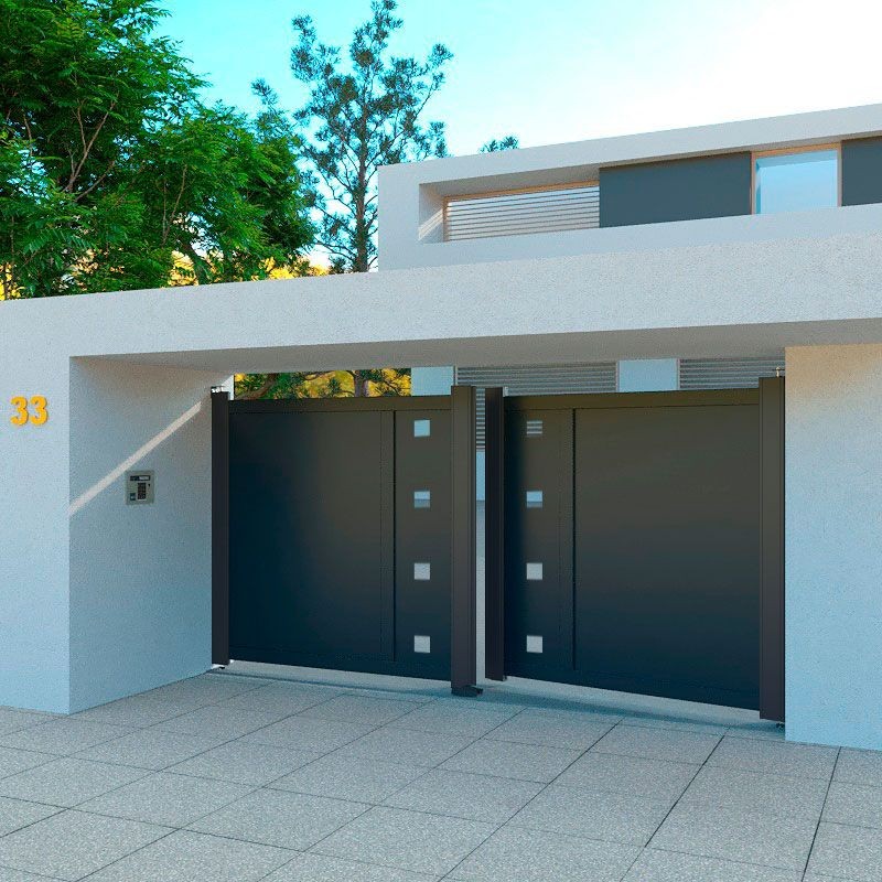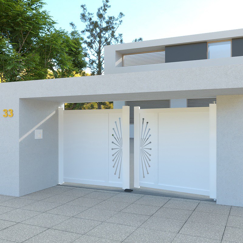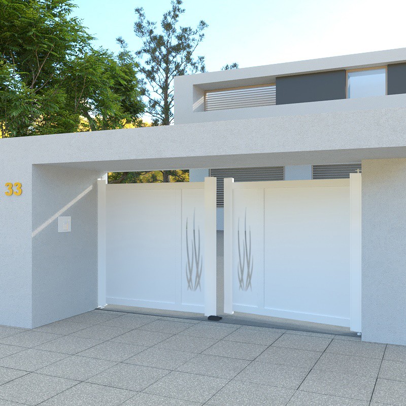 Ouvrant gauche. Avec cette option, étant à l'intérieur de la maison, le premier vantail du portail qui s'ouvre, est le vantail de gauche.