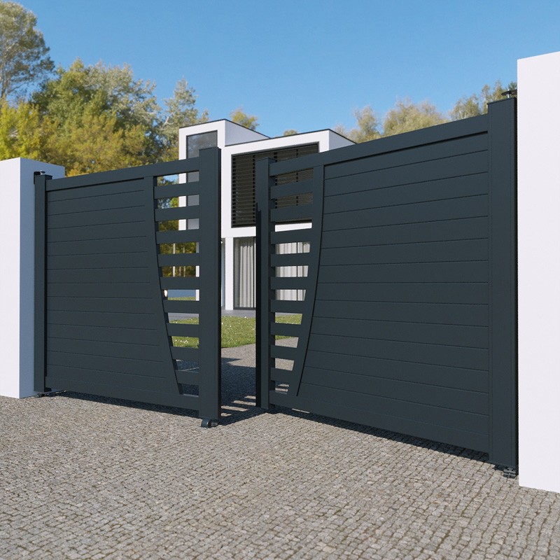 Portail aluminium San José battant sur mesure à motoriser. Largeur entre piliers max : 4500 mm. Hauteur max : 1900 mm.