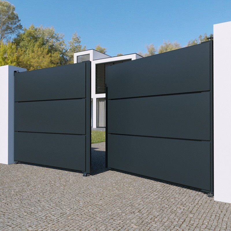 Portail aluminium Washington battant sur mesure à motoriser. Largeur entre piliers max : 4500 mm. Hauteur max : 2000 mm.