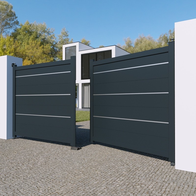 Portail aluminium Austin battant 2 vantaux standard, hauteur 1200 mm ou 1800 mm.
