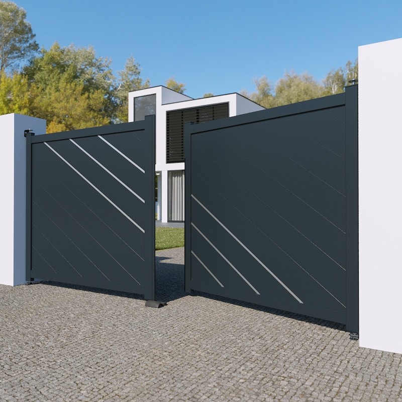 Portail aluminium Memphis battant 2 vantaux standard, hauteur 1200 mm ou 1800 mm.