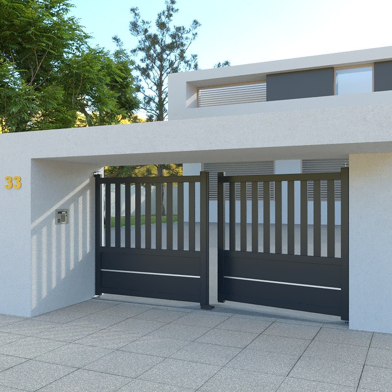 Portail Stuttgart aluminium à battant standard blanc ou gris à motoriser. Hauter max : 1800 mm.