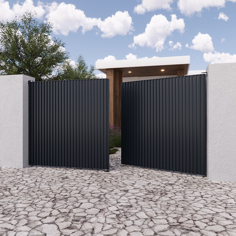 Portail aluminium Label battant 2 vantaux standard, hauteur 1200 mm, 1600 mm ou 1800 mm.