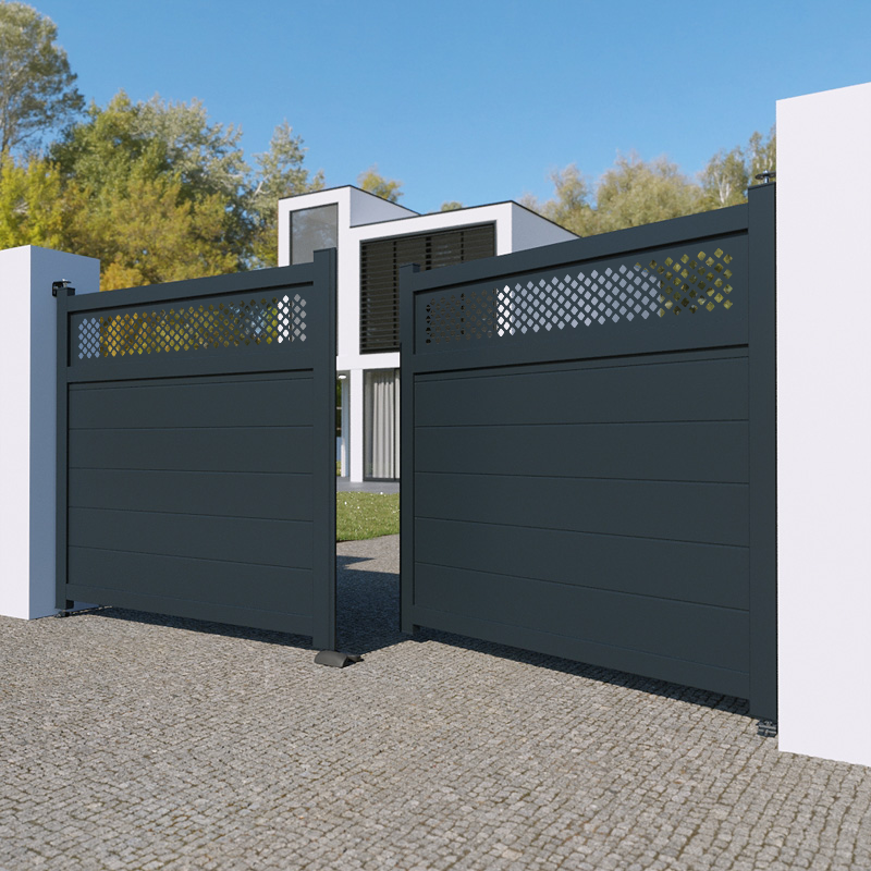 Portail aluminium Santa Fé battant standard à motoriser. Hauter 1200 mm ou 1600 mm.