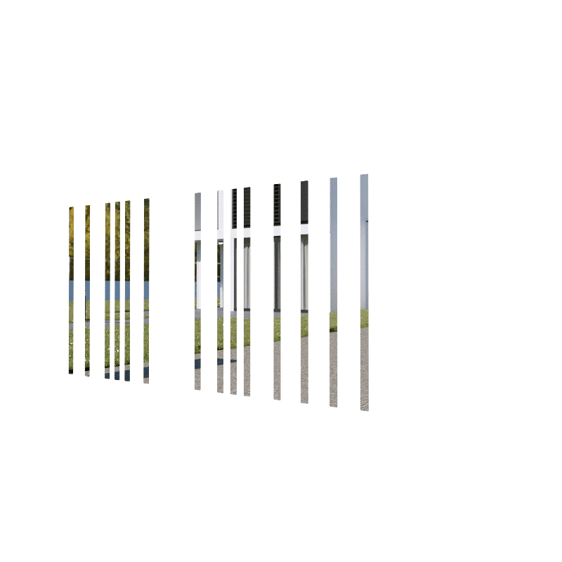 Portail Hollywood coulissant 2 vantaux aluminium standard à motoriser. Largeur entre piliers max : 4060 mm. Hauteur max : 1800 mm.