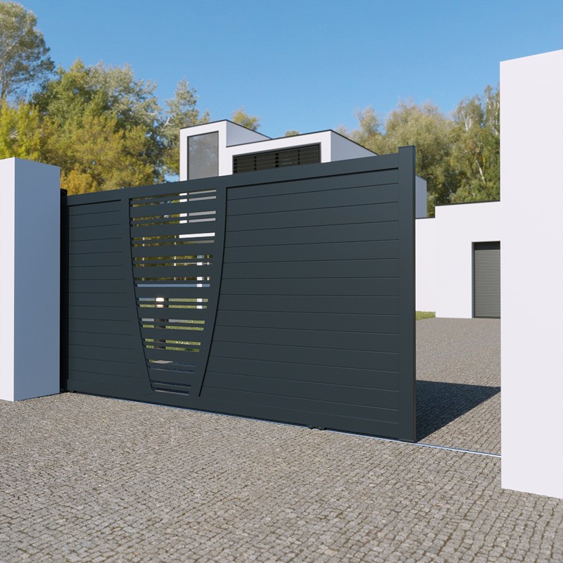 Portail aluminium New York coulissant standard semi ajouré, hauteur 1700 mm à motoriser.