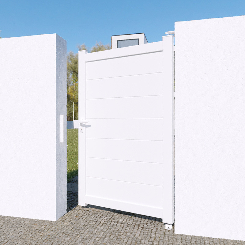 - Portillon aluminium termolaqué, fixation tenon mortaise vissée renforcée