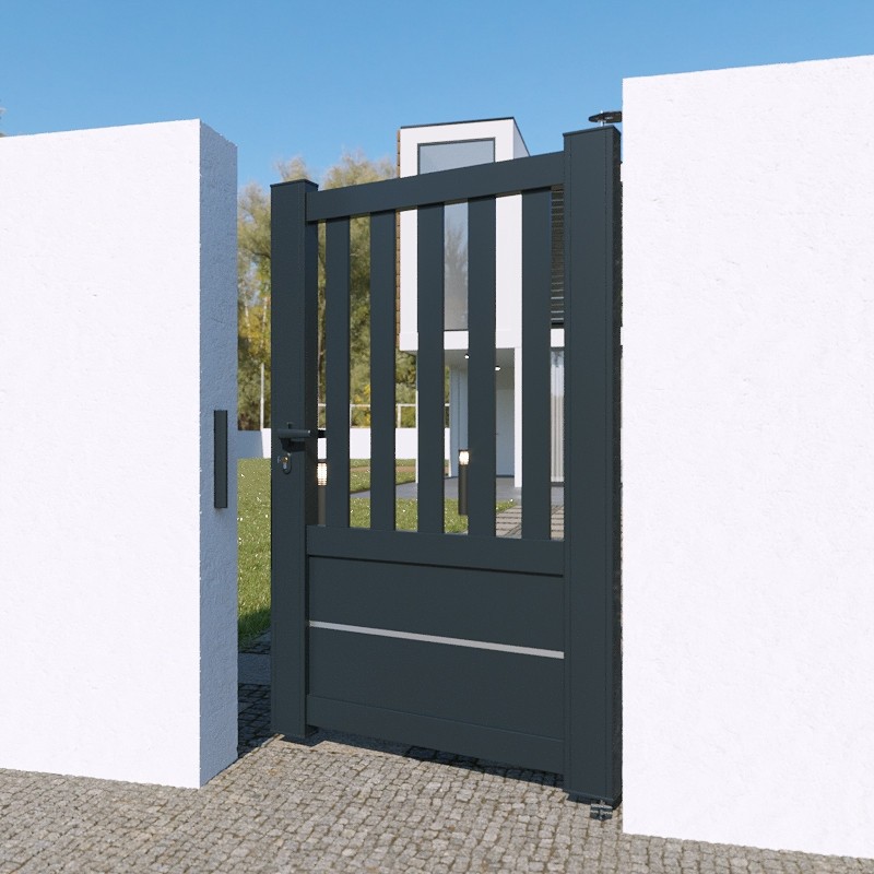 Portillon Cleveland aluminium sur mesure. Largeur entre piliers max : 1500 mm. Hauteur max : 2000 mm.